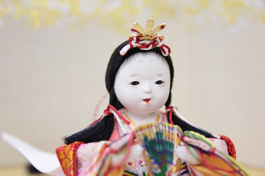 子供のお顔のかわいいおぼこ雛人形です。 江戸時代からの伝統の技術で制作しておりますので、世界に一つのお顔に出来上がりました。 昔ながらのあたたかなお顔です。