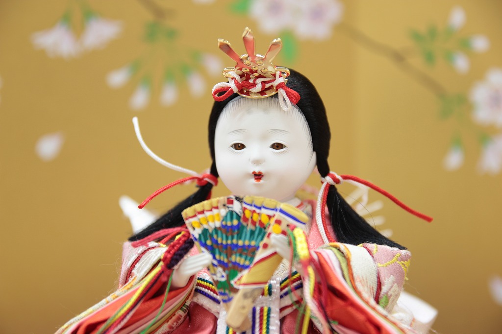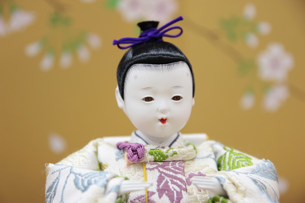 一つ一つのお顔を手彫りで仕上げています。 胡粉を10数回塗り重ねて、きれいなお顔に仕上げていきます。 シルクのきれいな衣裳も素敵に出来上がりました。