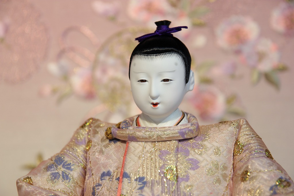 優しくあたたかなお顔の雛人形です。 手彫りで仕上げた世界に一つの特別な作品です。 鮮やかな衣裳も似合っています。