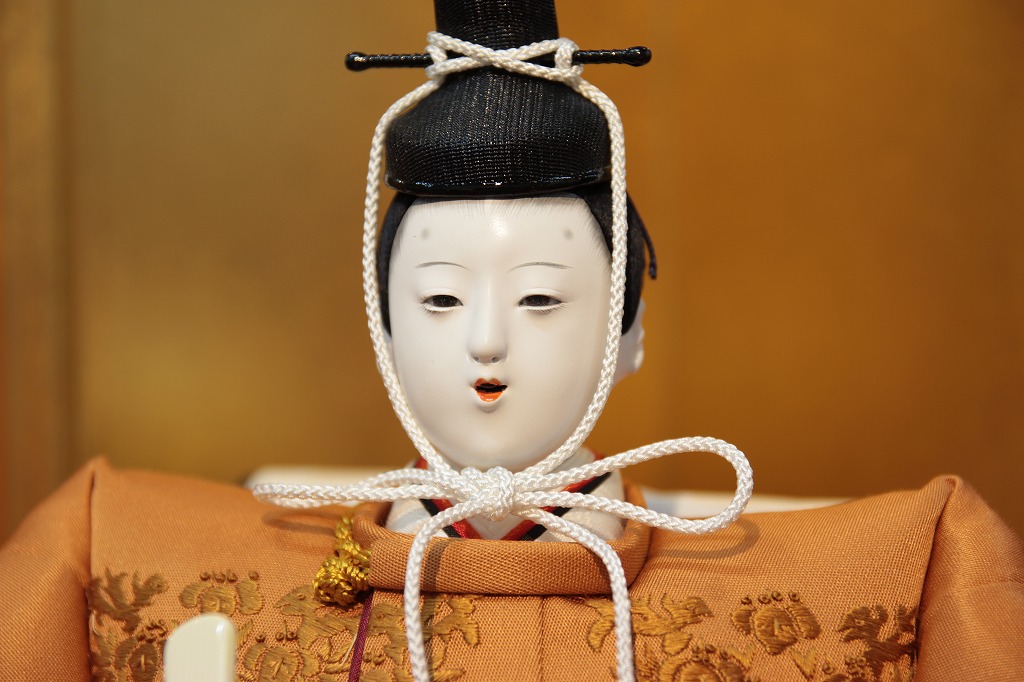 江戸時代から変わらない材料と技術で制作した桐塑頭のひな人形です。 胡粉を10数回塗り重ねておりますので、光沢があります。 京都の衣裳に合わせて表現しました。