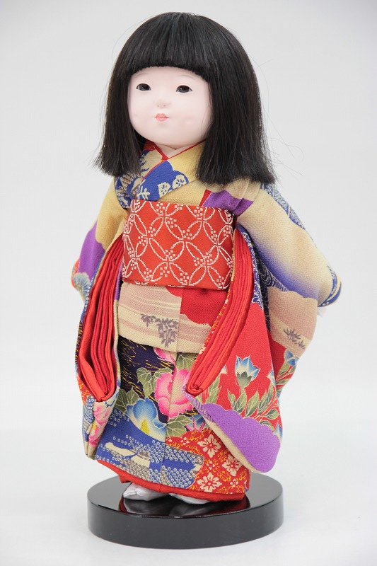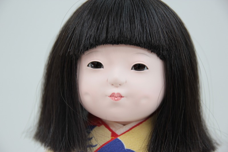 あたたかな桐塑胡粉仕上げのやさしいつやがあります。 エクボの表現も気に入っています。 髪の毛には人毛を使用しておりますので、ふんわりとナチュラルに仕上がりました。 スタイリッシュな着物も鮮やかです。