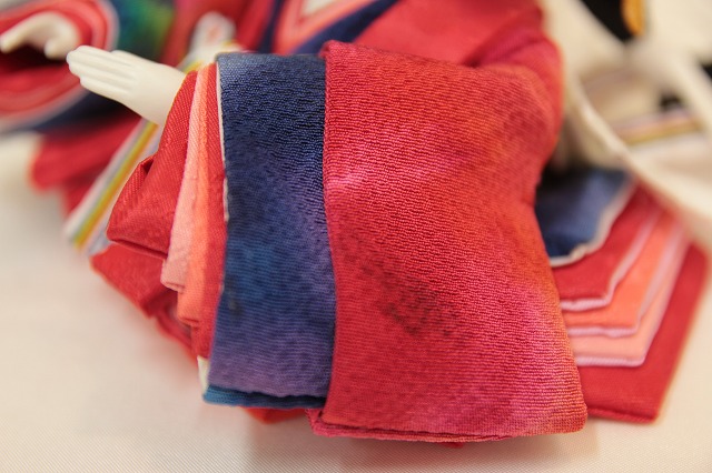 着物は、名古屋の有松絞り作家大須賀彩さんに特別に染めていただきました。