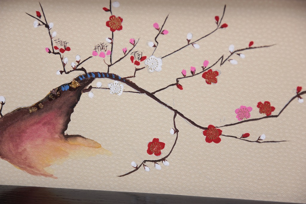 昔ながらの伝統のお顔は、桐の粉や貝殻の粉を使用して丁寧に表現しました。