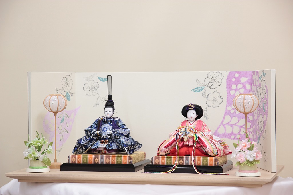 | 仕様 | ◆人形 お顔 伝統工芸 桐塑胡粉仕上げ 伝統工芸士 味岡映水作 お殿様の衣装 西陣織金襴 お姫様の衣装 西陣織金襴 ◆ 飾り台 木製 ◆屏風 包み屏風 手描き ◆お道具 お花:木、化繊等 ぼんぼり:プラスチック製(点灯式) |